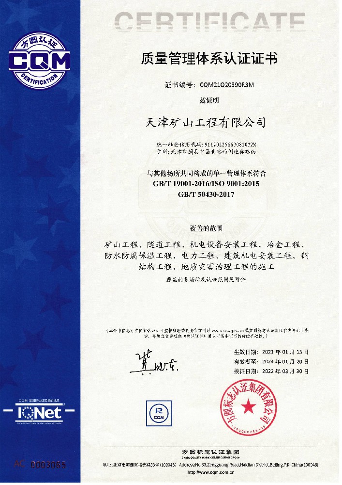 質量管理體系認證證書